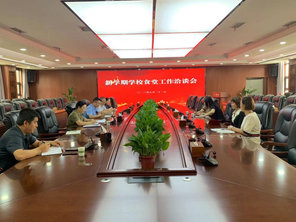 为全面做好2023年秋季学期学校食品安全工作,聚焦提高学生餐供餐质量,不断提升广大师生的获得感、幸福感、安全感和满意度,更好保障师生的饮食卫生安全,创建师生满意食堂,开学前夕,2023年8月21日分管后勤工作的校领导在云潭南路校区组织召开新学期学校食堂工作洽谈会和食品安全培训工作会议。本次会议分两个阶段进行,第一阶段会议是8月21日上召开新学期学校食堂工作洽谈会,参加会议的人员有学校党委委员、副校长周勇,后勤处副处长罗湘莉、膳食科全体人员、食堂托管商法定代表人以及食堂项目经理,会议由后勤处副处长罗湘莉主持。