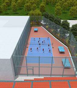 工程概况:充分利用学校现有空置的足球场、篮球场周边及一食堂对面停车场地,将其改造为学生活动场地,有效提升师生羽毛球、排球、乒乓球运动空间。工期至9月。