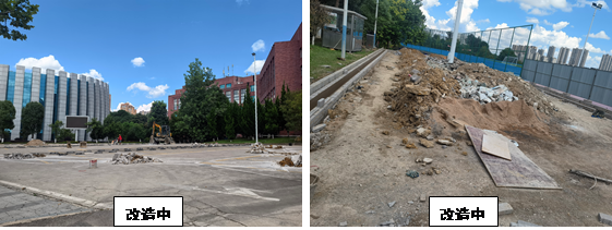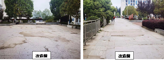 工程概况:我校学生生活区及行政楼周边道路存在铺装脱落、沉降凹凸、线型不好等问题,严重影响师生出行及环境卫生。实施本项目主要包括在车行道重新摊铺沥青混凝土;拆除人行道原有铺装,改铺彩色透水混凝土,同时对原有不畅通污水系统、化粪池进行改造,优化行政楼周边道路线型。工期至9月。