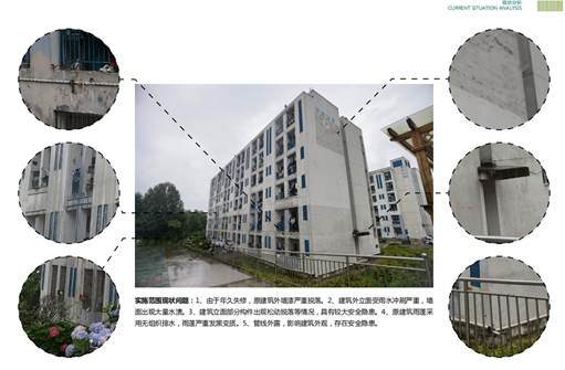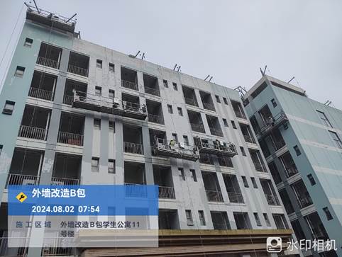 工程概况:原学生生活区楼宇外立面由于长期受雨水侵蚀,存在涂层空鼓脱落、管线敷设凌乱、局部楼宇渗水等问题。本项目改造内容为一是铲除原有涂层,重新粘贴软磁;二是涂装金属构件;三是梳理外挂线路;四是漏水点防水处理。本项目分为A、B两个包进行发包,其中A包为1-10号学生公寓及4号教师公寓;B包为1-3号教师公寓、11号学生公寓、力行楼、一食堂、二食堂。