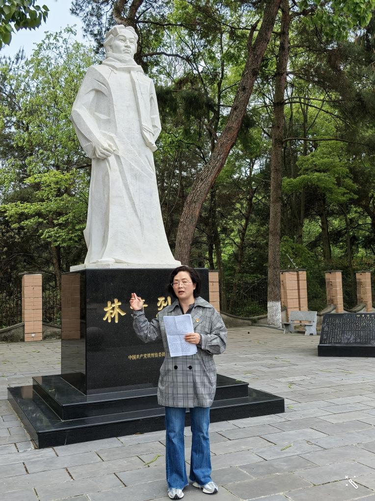 接着,罗湘莉书记在林青烈士雕像前给全体人员上了一堂“重温历史,缅怀先烈,重走长征路”主题党课。她详细介绍了林青烈士的入党经过、工作成果,生动讲述了林青烈士不顾危险帮助中央红军长征的经过以及英勇就义前的讲话,这些事迹让后勤处全体人员为之动容,纷纷表示要将这种不屈不挠、坚毅刚强的精神传承下去。